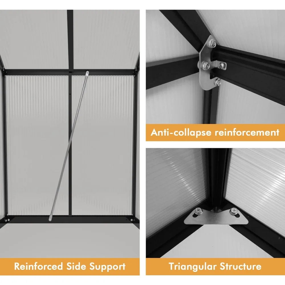 Grow more this season with the 6 By 4 Foot Walk In Greenhouse Aluminum Garden Kit. Built for outdoor use, this compact, sturdy greenhouse protects your plants from pests and weather while maximizing space. The sleek black aluminum frame combines durability with a clean look for any garden, patio, or backyard setting.