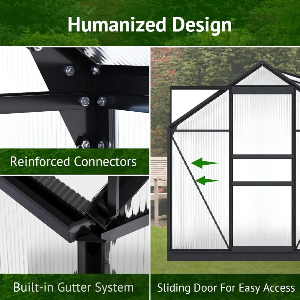 Sturdy Aluminum Outdoor Greenhouse 10x6ft Polycarbonate