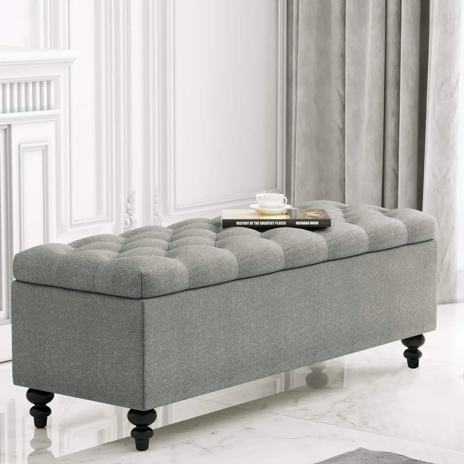 Upholstered Button Tufted Storage Ottoman With Safety Hinge