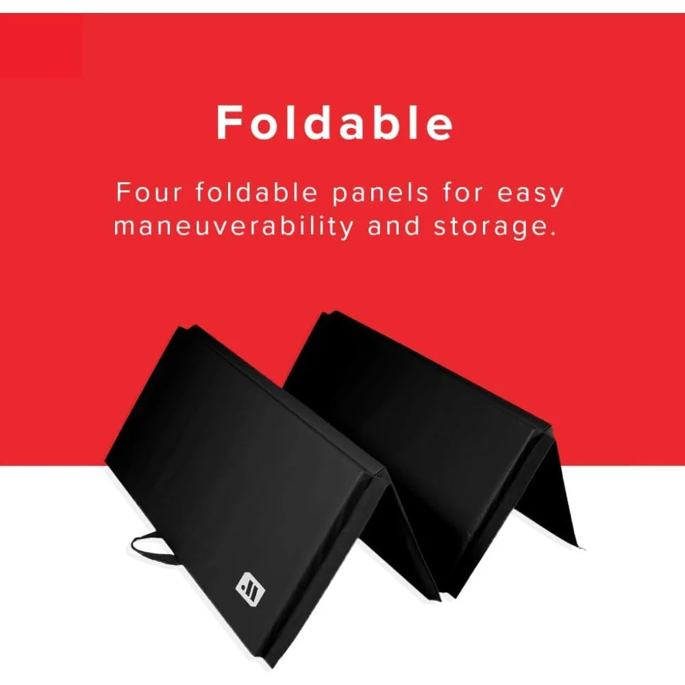 - Four-panel folding design: Folds down to 4' x 2' x 8" for easy maneuverability and compact storage; includes carrying handles for on-the-go fitness.