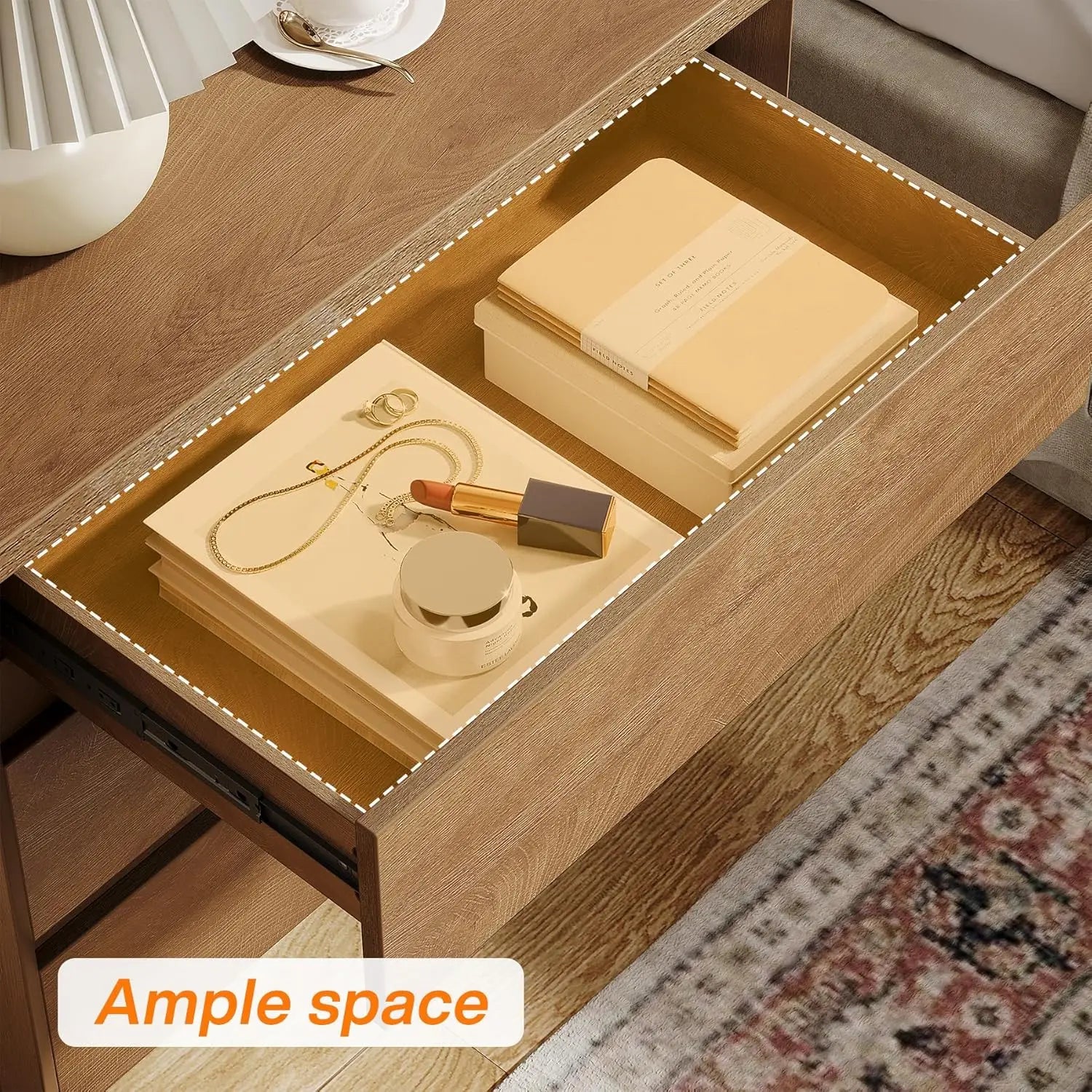 Designed for practical living, this nightstand provides three roomy drawers to keep your essentials within easy reach—from glasses and chargers to night-time necessities—without cluttering your space. The clean lines and warm wood tone create a welcoming focal point beside your bed.